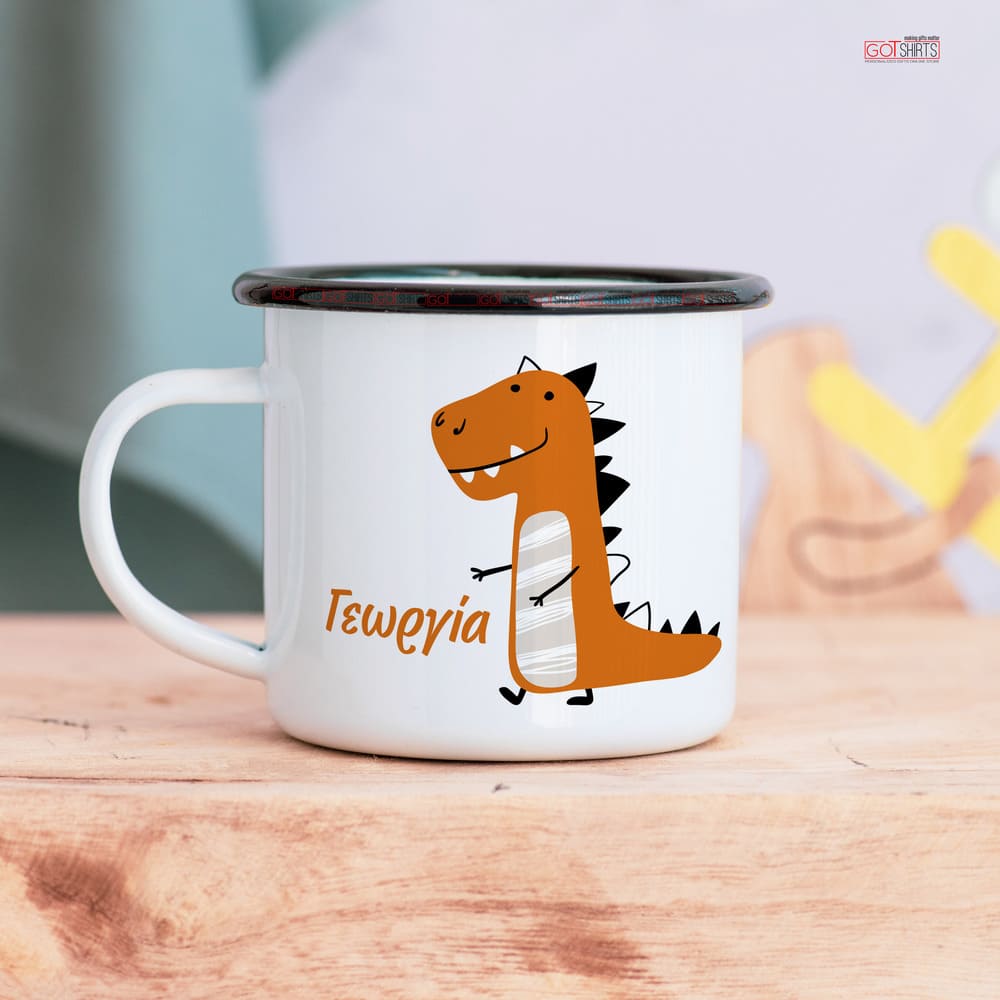 Orange Dinosaur - Stainless Steel Enamel Mug - GOTShirts