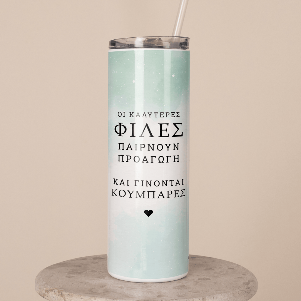 Best Friends - Stainless Steel Skinny Tumbler With Straw