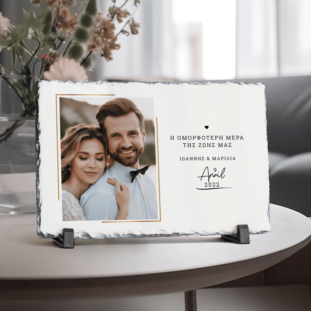 Your uploaded photo will be printed on a beautiful, rustic rock slate so you can celebrate your once in a lifetime moments with this unique photo print. Surprise your best friend or significant other with a special photograph printed on our rock slate or create an elegant, rustic photo print collection for your own home.