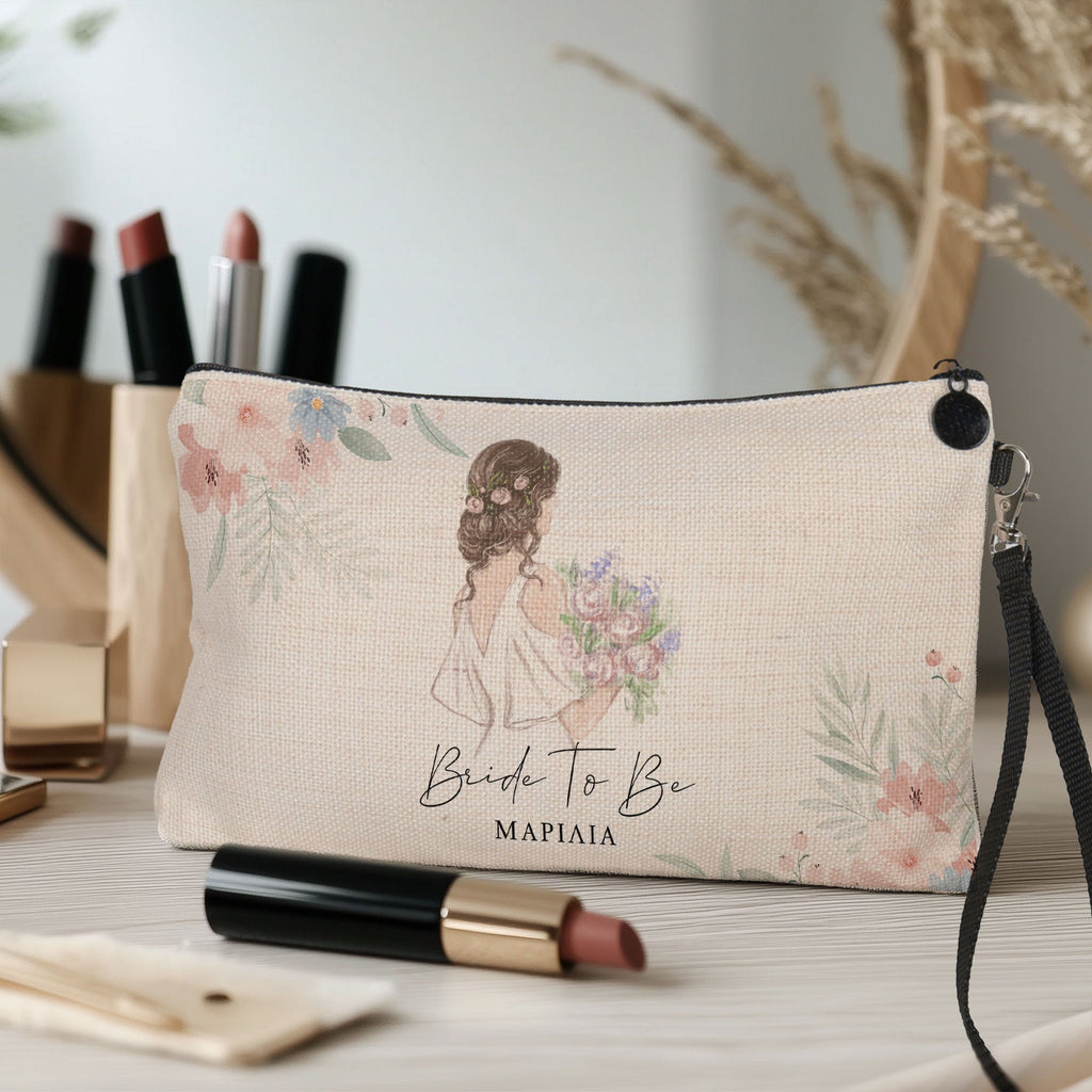 Our customers love to design this make-up bag for their bridal party, bridal shower, bachelorette party or wedding. Add the brides name, a fun hashtag or a funny quote.