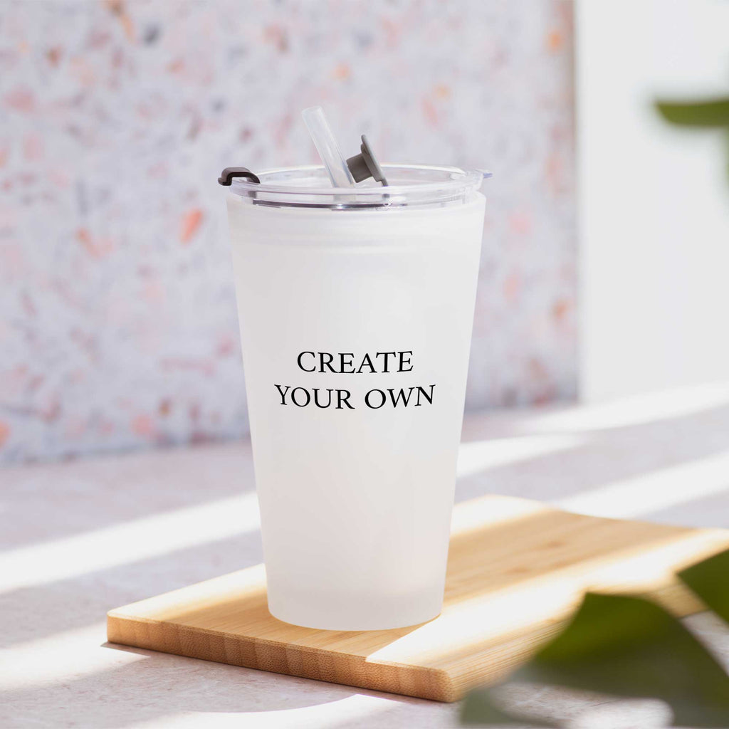 Create glassware that you’d love to use over and over again. This glass tumbler is suitable for iced tea and coffee lovers who want to curry their favorite coffee, iced tea, or any other cold beverage with them everywhere they go. Keep this beautiful personalized glass tumbler with straw for your self or customize one for a friend. Add a special phrase, a quote or a name of your choice to create your own unique Frosted Glass Tumbler!