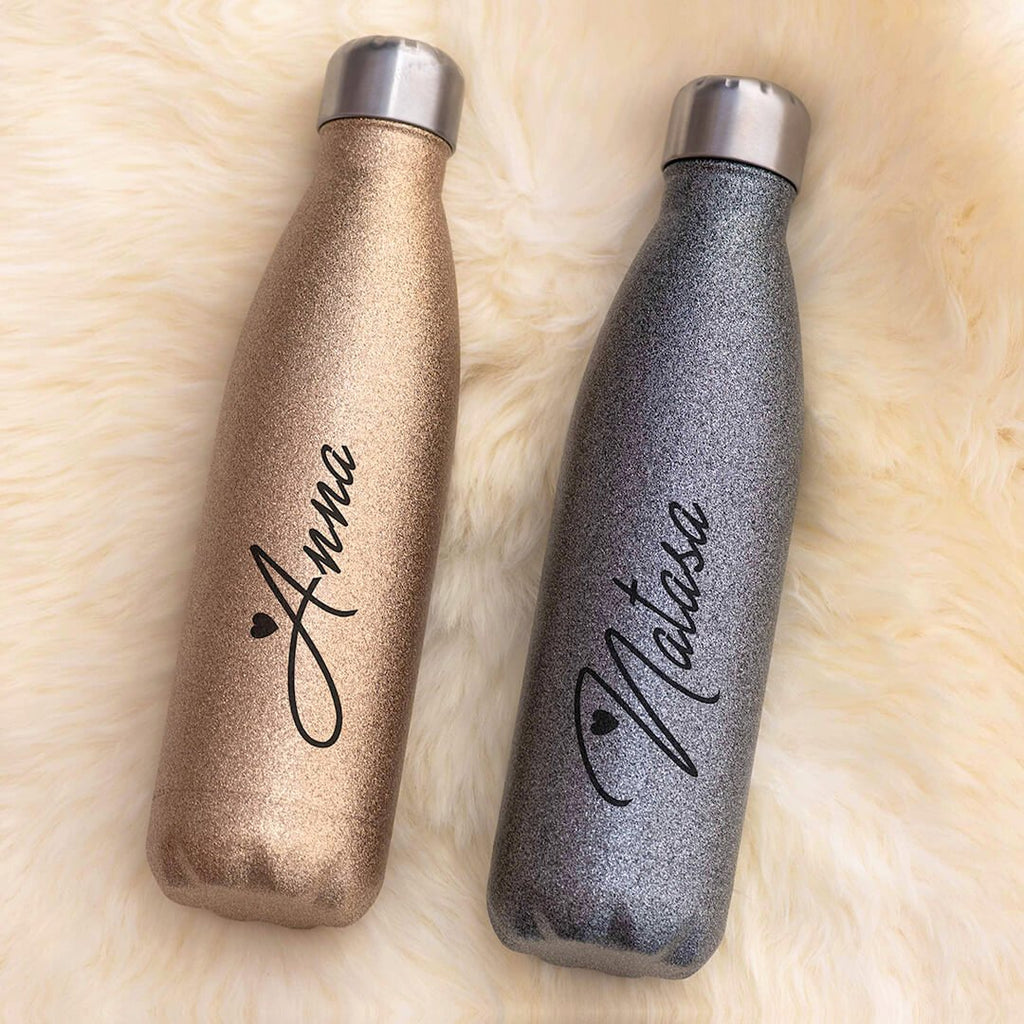Add more fun to everyday drinking with these stunning GLITTER BOTTLES! Made from 100% STAINLESS STEEL and available in 4 colors: Gold, Silver, Lilac and Electric Blue!