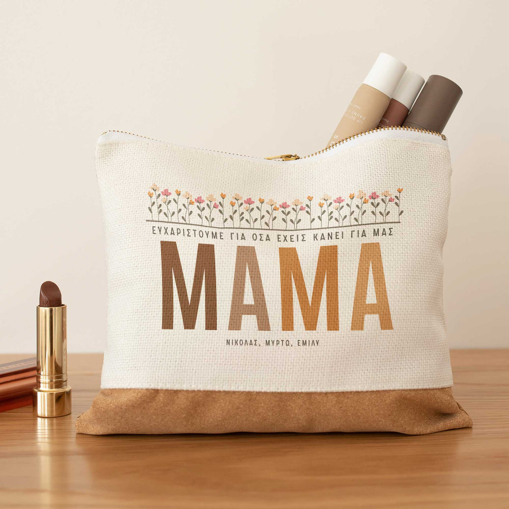 Thank You For Everything Mom - Linen Makeup Bag With Cork