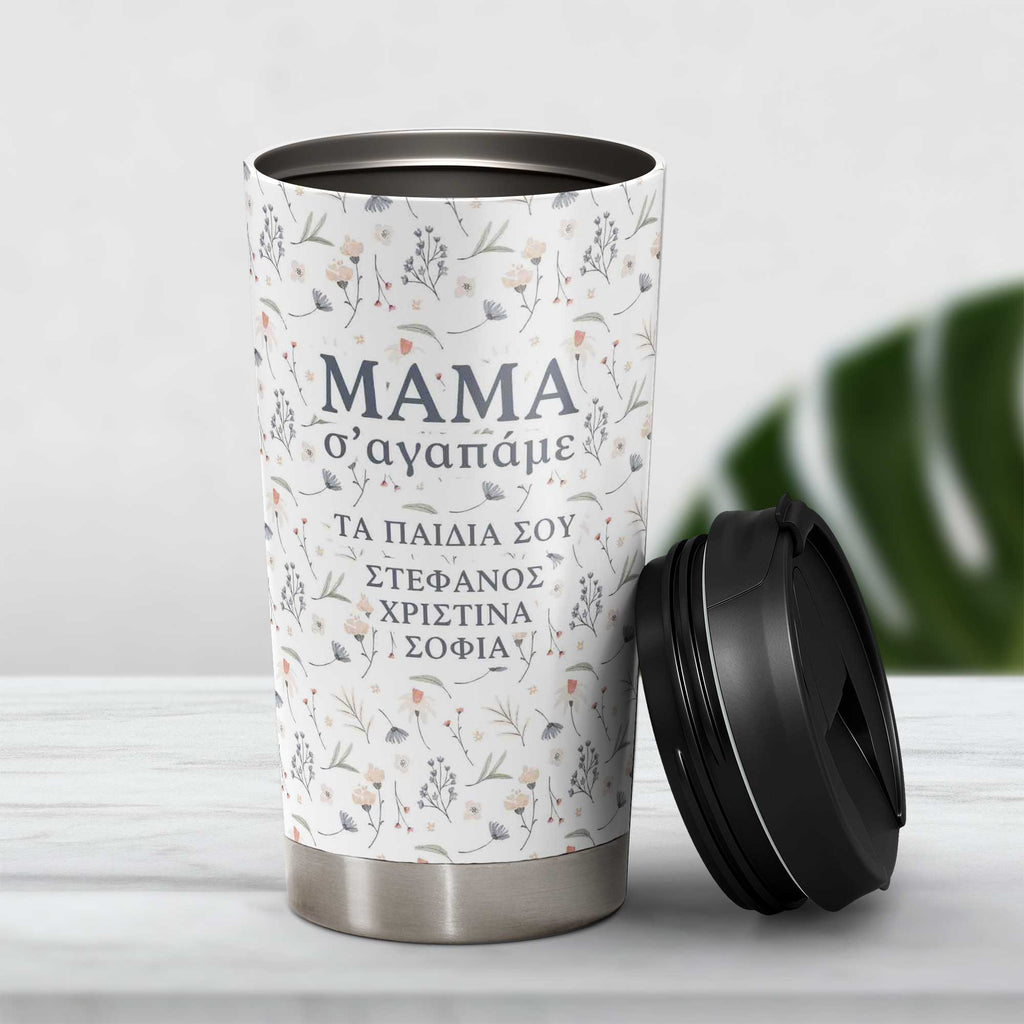 We Love You Mom Floral Pattern - Stainless Steel Travel Mug